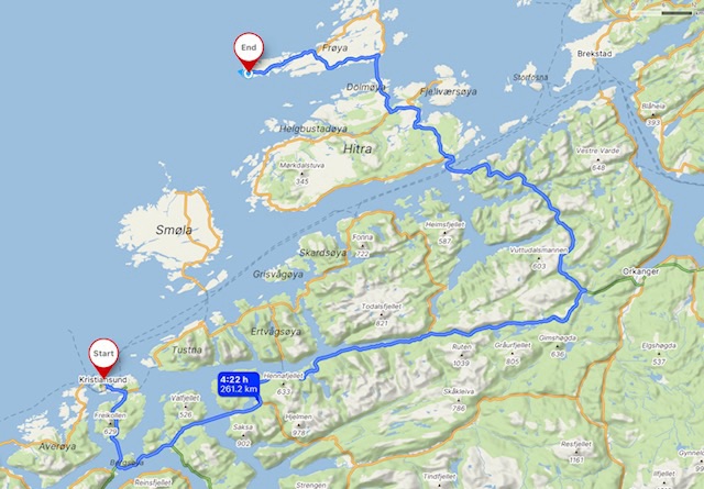 Originally I had planned to stop midway along the journey I had planned up to Frøya island. With a ferry it was about three hours, about twice as much as I like to drive. But, I am keen to stay put in a place for a few nights rather than move on each morning, so I opted for the longer journey. The weather is set fair for the next couple of weeks, so it wasn’t a question of making the most of one particular fine day.