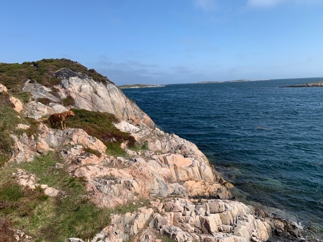 This morning we walked the island circuit on a clear morning cooled by a brisk northerly wind. The coastal section was excellent, with the return through sheep farms.
