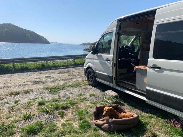 I then drove back through the two seven kilometre tunnels to the mainland and on a rough road around the coast for an hour or so to the Seterneset peninsula. There are a lot of park ups on the Park4Night app around here, so I avoided those areas, as here in Norway they are mostly used by large motorhomes. That the rough road had no StreetView pictures was encouraging further, and I was duly rewarded. There are a few small communities, mainly of holiday homes that are currently unoccupied, though that may change later tonight. It’s perfectly peaceful, very scenic and has a good signal for the rugby finals..