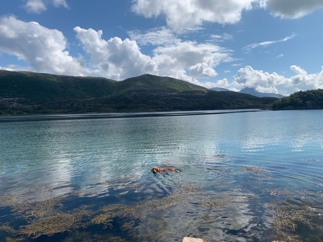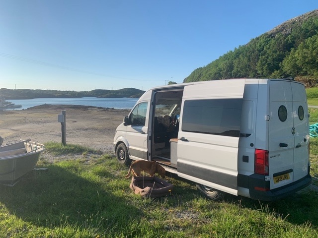 I got talking to three Polish guys who were returning to their home in Sweden after a few days fishing. Only the driver was sober, but they were amusing, making a fuss of Roja and showing me pictures of their own dogs.