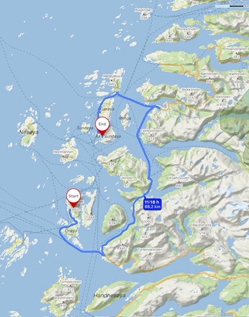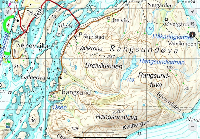There are two hikes I have looked at here on Rangsundøya. I spoke with an old guy, the only person I have seen, who was mowing grass this morning, and he confirmed for me that both tracks exist.