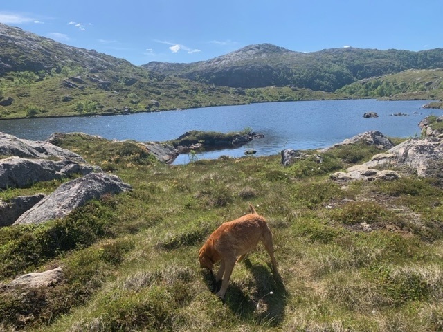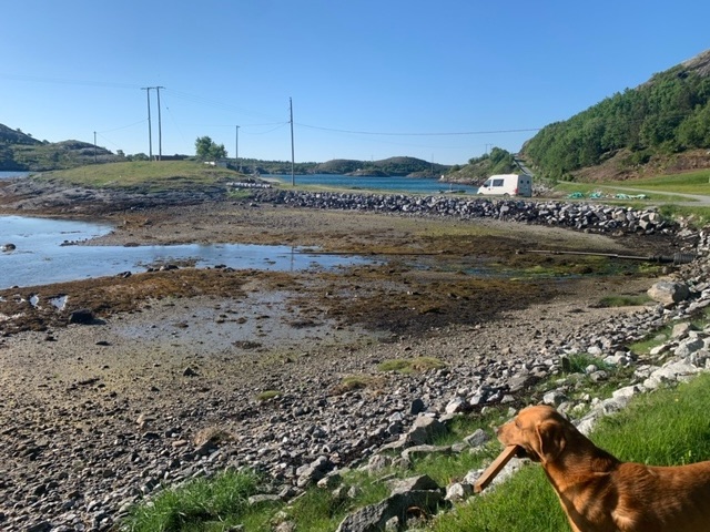 At the top of Breiviktinden I met the only people I saw all day, a Norwegian guy carrying his one year old in his backpack and a Ukrainian couple that are staying with him. We spoke for a while, and walked down together. He was from the neighbouring island of Gjerøya, where I will be later in the week, and had come across in his own boat, for the hike, and lunch at the restaurant by the quay where the ferry docks. He gave me some information on hiking on Gjerøya, and the best place for the van. It was him who told me about the old guy across from where I am staying now.
