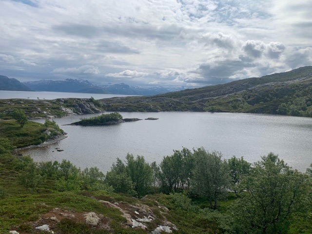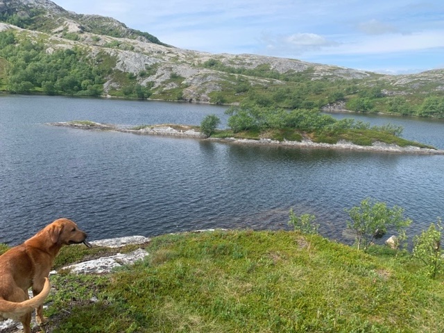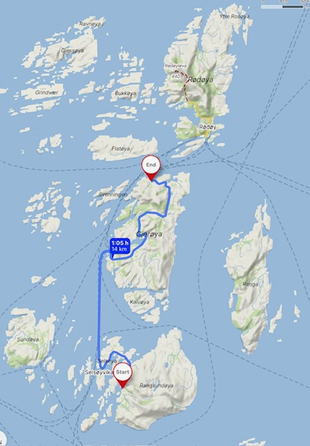 At Roja’s request, we took in the lake we were at on Saturday, Håkaringvatnet, set magnificently into the rock. We were out for a couple of hours, and then drove into the village at Selsøyvik to get rid of the garbage, use the shop and fill up with water.