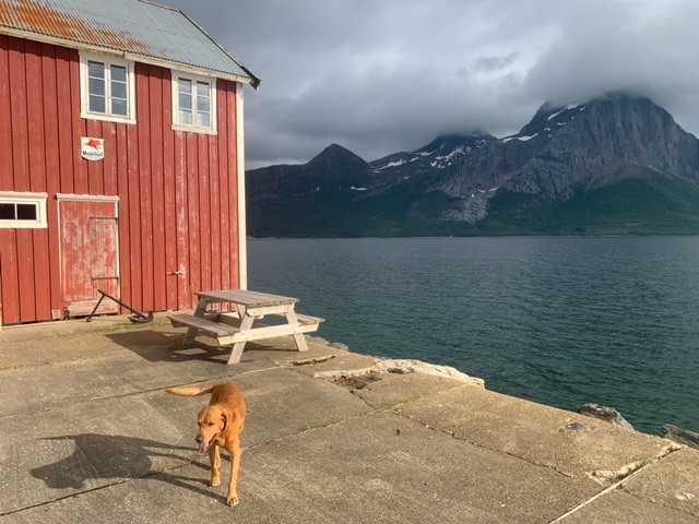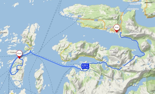 There are two ferries a day back to the mainland, 7:15 am, and the one I took, at 5 pm. That got us back to Jektvik an hour later, after which we drove on for 40 minutes or so, keeping an eye out for a place for the night. It is now high season, and there are plenty of motorhomes and campervans around. Almost every roadside Park4Night place has lots of vans, especially those with a toilet. As with a lot of routes, get slightly off the main drag, and it’s very different.