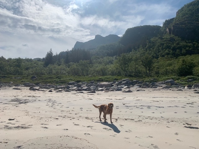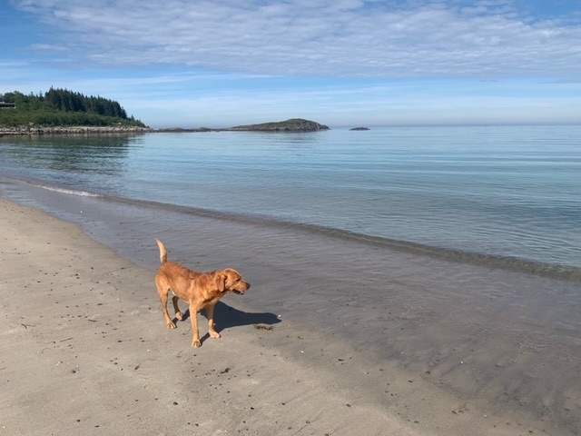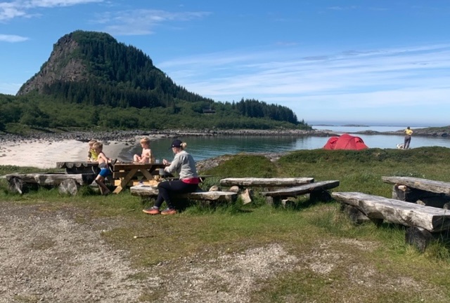 Late in the afternoon a woman arrived with her three young sons, 6, 4 and 2 years old. They played on the beach for a while, then as the evening went on, they put a tent up on the headland. The woman came over to say that she hoped the children wouldn’t disturb me. I reassured her that they would be no bother at all. As the boys played in the sand later in the evening we shared a beer. They lived in Bodø and she said with the heat this last week she was just desperate to get away.