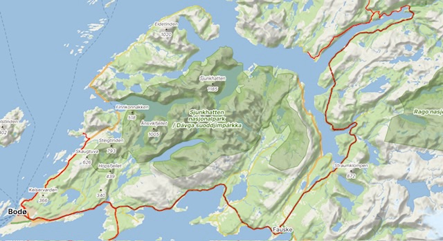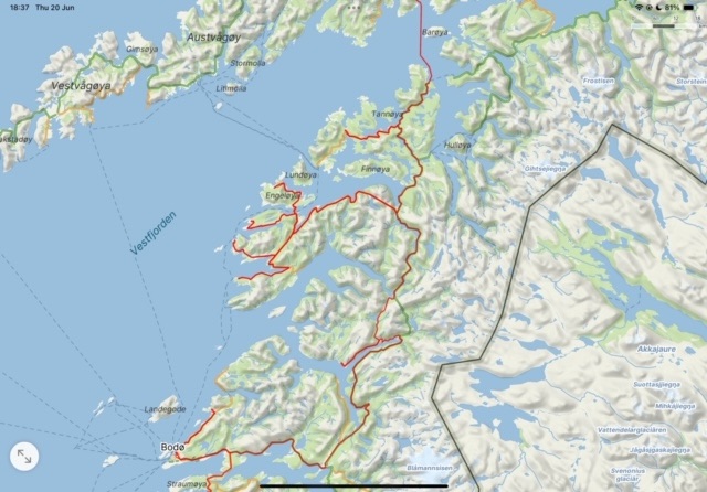 My plan is to head out onto a few of the peninsulas between here and Bognes, when I can get a ferry over to Vesterålen, and rejoin my original route there. The E6 is Norway’s arterial highway, and the small roads to the destinations I have identified branch off. Driving is incredibly scenic, and slow. Ferries and tunnels cross many fjords further south, but not in these sparsely populated areas up here.