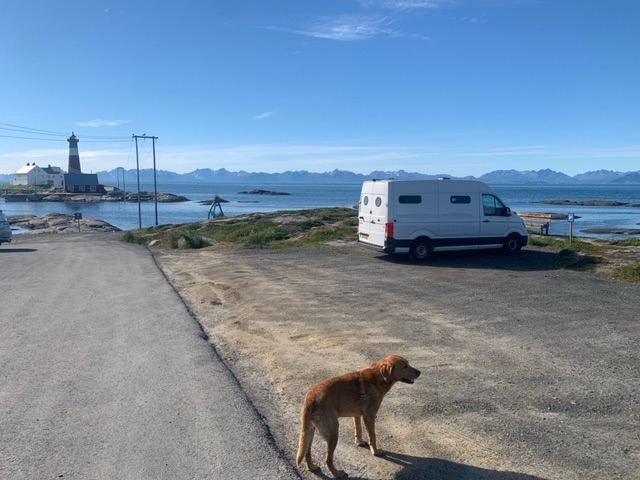 We walked a section of the route from yesterday, having a bit less time, and at one viewpoint met an older Norwegian couple who were staying in the motorhome close to me. We chatted about the wonderful Vestfjord coast, and the Lofoten Wall, as it is known. Vestfjord is the huge channel between the coast I am on now, and the Lofoten Islands. The jagged continuous mountain range that runs down the spine of the islands is known as the ‘wall’. I’m not sure how, but we got talking about Roy Jacobsen. Jacobsen is a Norwegian author who wrote a trilogy of books about a woman’s life on a remote (fictional) island just south of Lofoten, called Barrøy, and how her life was shaped by the Second World War. It is highly recommended. We talked about idyllic places, such as the one we were in, and the contrast with the history there.