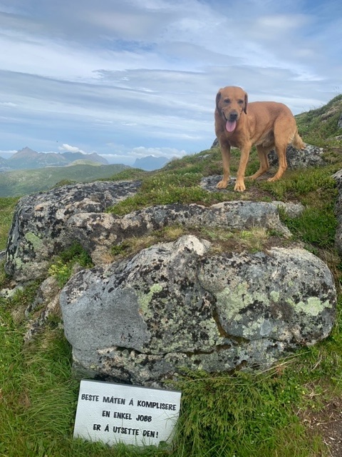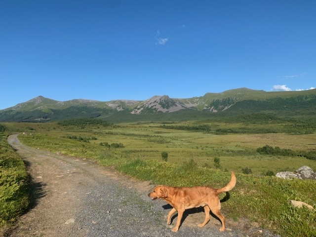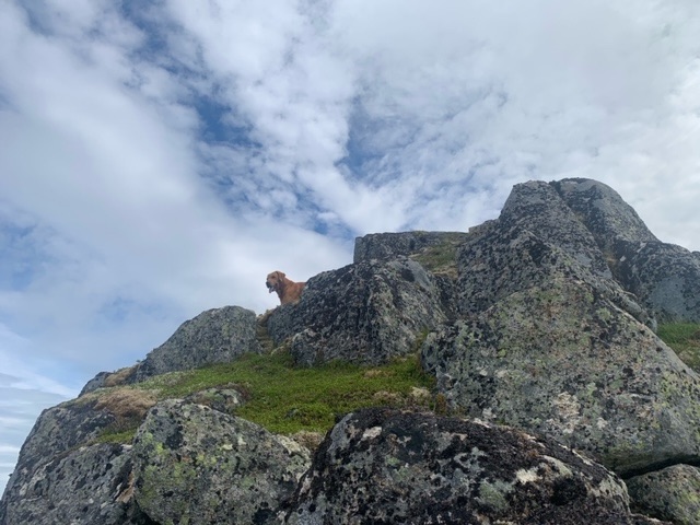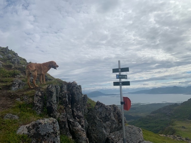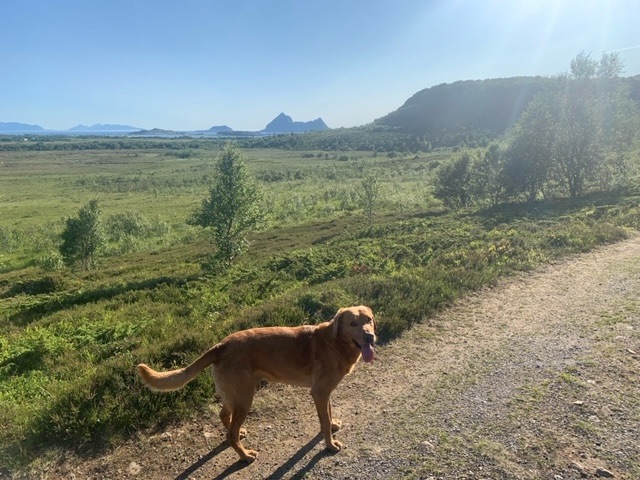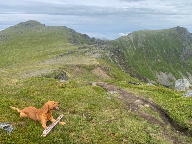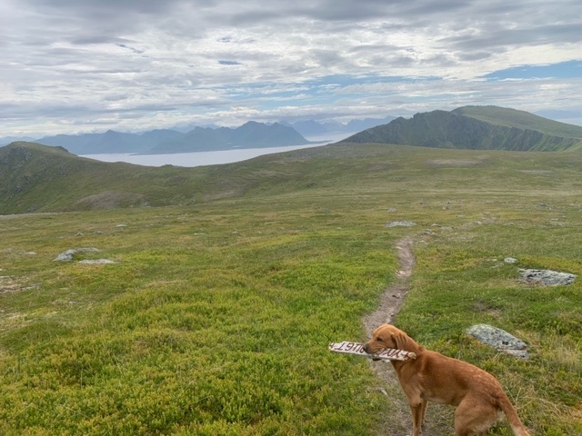 Having been confined to the van for a long time on a sunny day, Roja and I we t out for 90 minutes or so, walking in towards the mountains I was keen on, and in particular, a fine ridge, one that screams at you to get onto it. I saw the paths on my Hvor map, but often there are more than is marked. I spoke to a local lady out for some evening exercise and she told me the best possibilities for the following morning, of which, I chose the northmost, which meant moving the van a few kilometres this morning.