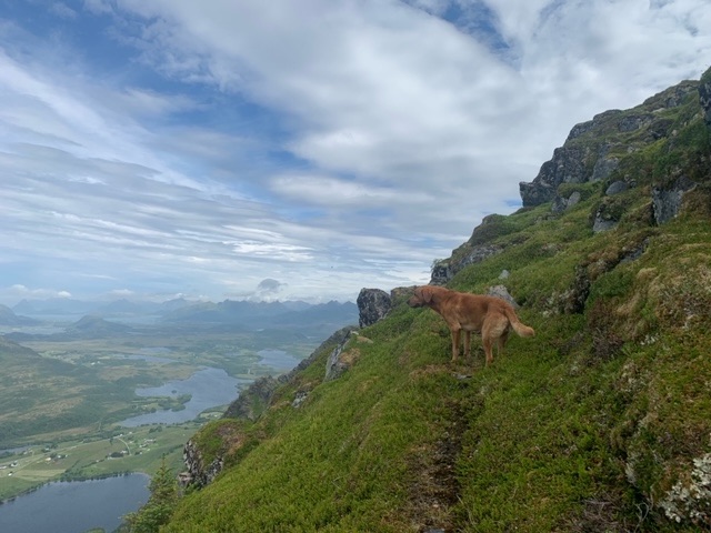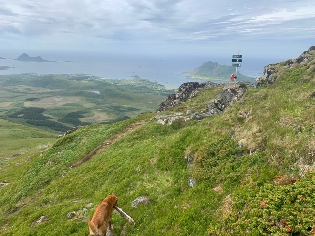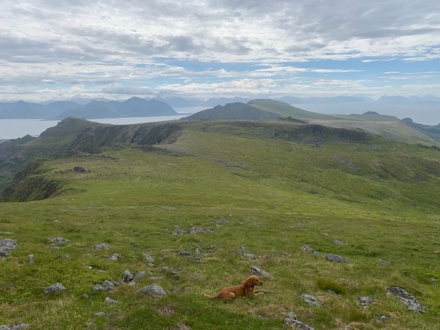 We then descended to the ridge itself, and took in just more than half of it, about three kilometres, before doubling back in different track to join the path we had ascended on lower down. Views over Lofoten to the south and 180 degrees of the Vesterålen islands were amazing.