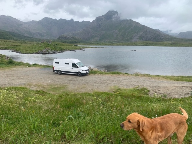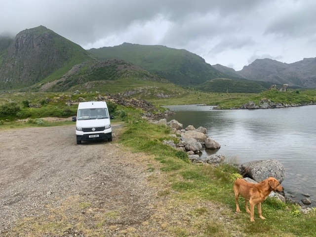 Yesterday after breakfast I joined the ferry queue at Skutvik, which already had 50 vehicles in it, most of them motorhomes and cars with caravans. It’s a free crossing to Lofoten and I think people like free things. Having got the car in the line, I took Roja out for an hour on a cloudless morning, and used the local grocery store on the harbour. The ferry didn’t depart until 11:45, and took just over two hours to get to Svolvær. Even since I was last on the Lofoten Islands, in 2016, it has noticeably changed, with much more tourist infrastructure, hotels, apartments, motorhome facilities. There are some small sandy beaches, and they were really busy with families doing beach type activities, which surprised me when it is so easy to access sandy beaches and have them entirely to yourselves, just not in Lofoten.