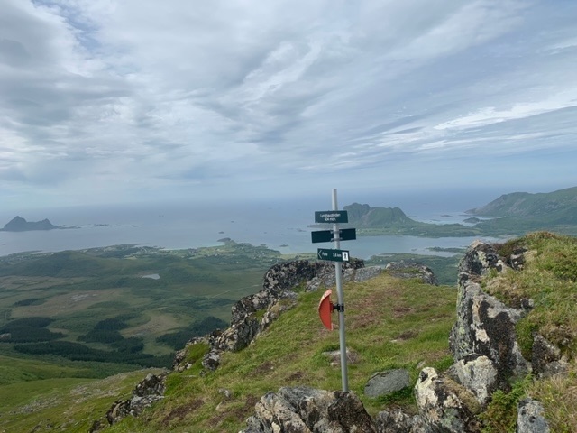 From the village of Føre we walked maybe three kilometres before there was any significant incline, and then the path ascends quite steeply for about 500 metres to the summit of Lynghaugtinden.