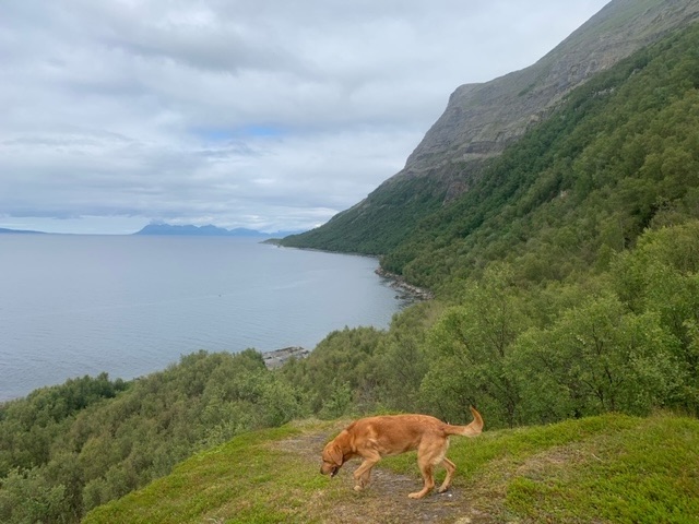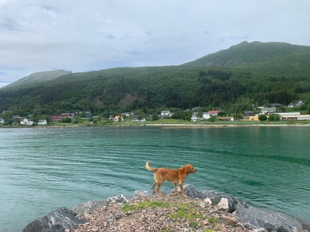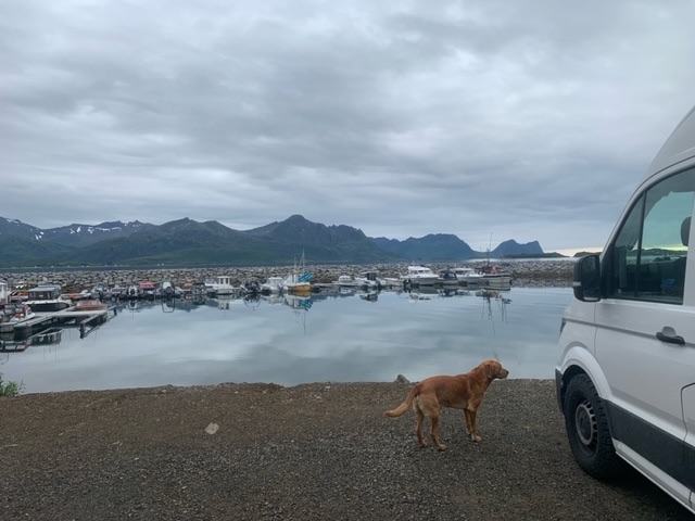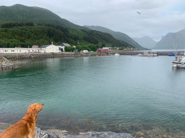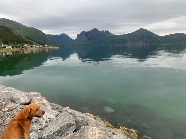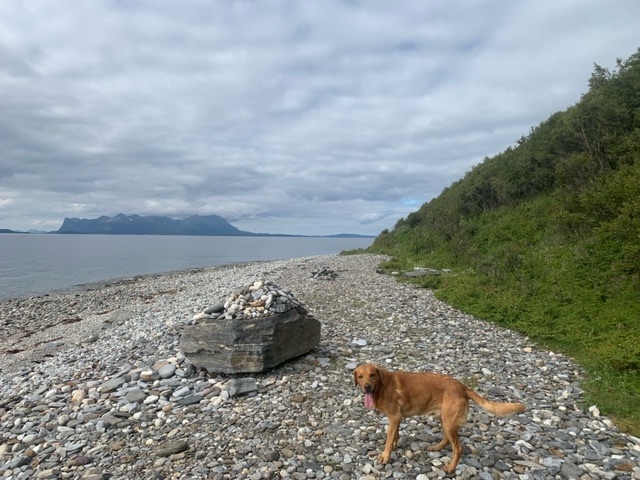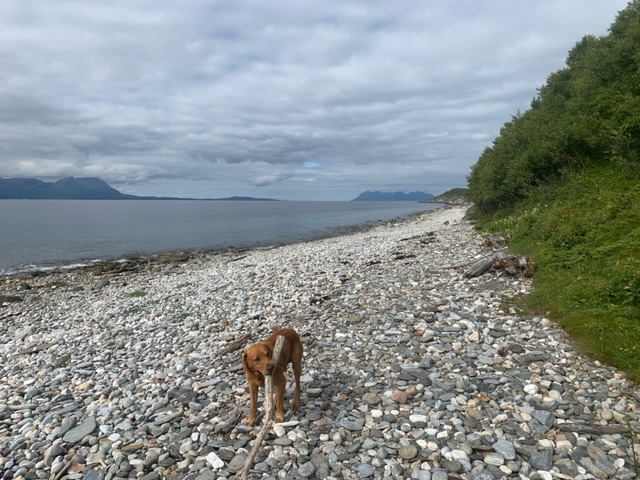 Between Grytøya and Rolla is Harstad town, that serves the little communities and villages across a wide radius. A ferry runs to Rolla after which I immediately broke the journey, and took on a coastal hike with Roja to two beaches, Omnsand, a rocky beach, and the splendidly isolated Dyngenesstranda. By the time we returned to the van it was late afternoon. I had Test Match Special on throughout, from Lords; it seems such a long time that I listened to test cricket from England, a sign of changing times within the game.