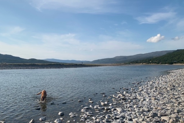 Again reluctantly, I drove further south after lunch, and found a place for the night at the estuary of the river Goahtemuorjohka. Rivers here do tend to have the most unpronounceable of names. Here it is indeed, ‘full of fish’, to quote the Python poem about the Yangtze. It is a popular fishing spot for many visitors.
