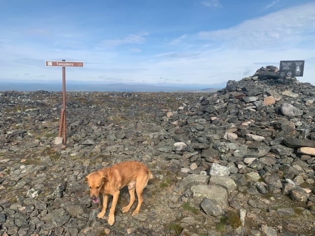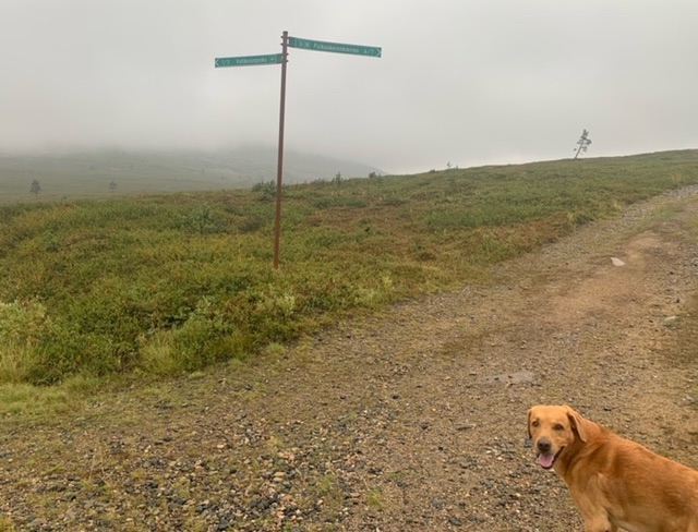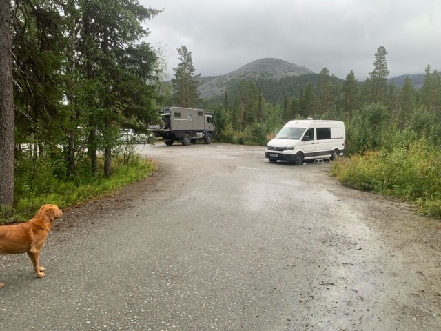 I drove south for an hour to Äkäslompolo where I filled up with water and used the supermarket. I was here also two years ago. Then is stayed up on one of the ski car parks, but on the day I left, found a better place at a hiking car park. So that is where we are now, sharing with a German truck, owned by a Swiss couple who live in Finland. I’m usually very put off by these huge converted trucks, but Roja made the peace, immediately befriending their spaniel. Despite the truck, we got in well. It turns out the truck is new to them, and they are on a shakedown trip before heading off around the world in it, first to Africa, then to South America. Initially though, they were headed to Norway, and wanted some advice as to where to stay; they were also keen hikers.