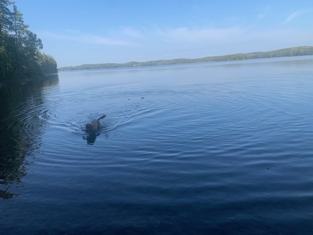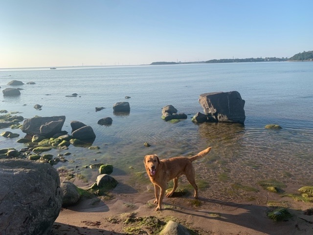 I’m parked up on a peninsula about twenty kilometres out of Pori which is part of the Bothinan National Park, which extends, mainly on islands, to the south. It is shaded, great for Roja and I, less good for the van’s solar appetite, and adjoining sand dunes, beaches and a golf course. We had an hour out to investigate just now, but will do so further tomorrow..