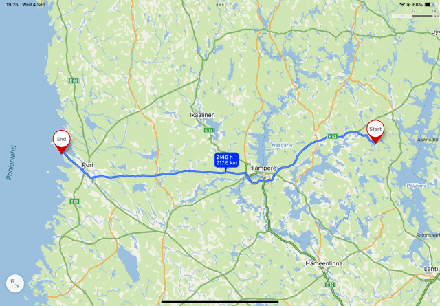In the afternoon I drive two hours to the west coast and the Gulf of Bothnia. That meant the ring road / motorway around Tampere and through the town of Pori. There is more population here, which I expected. My plan is to head down the coast over the next couple of weeks, perhaps visiting some of the islands that make up the archipelago around Turku, though as of tomorrow, summer has finished as far as the ferries are concerned, and many boats only run for commuters. I haven’t quite finished my research on that, so, as ever, will make it up as we go along..