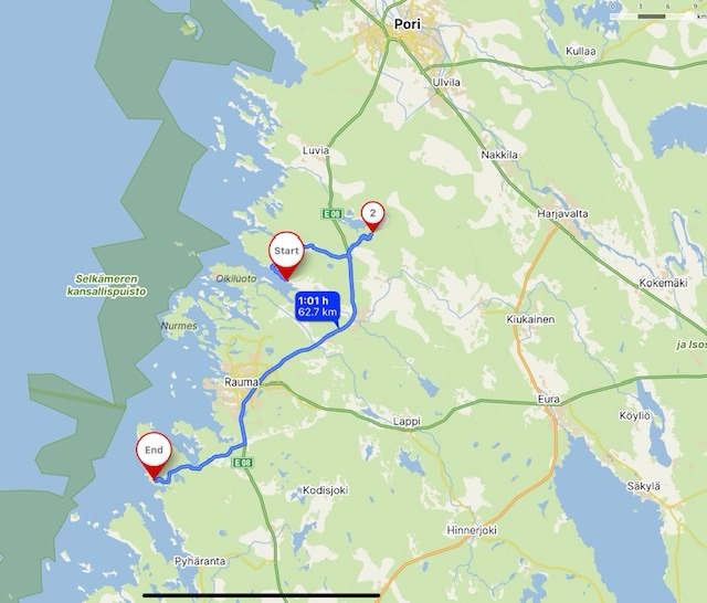 Just before lunch I drove into Pori to the sports complex where a couple I had met when walking, the only people, had recommended a sauna. There were actually three in the male area, two dry saunas at 80 and 85C, and a wet sauna, or steam room. It’s inevitable to get chatting, as good manners mean asking before hurling water on the hot coals. I claim to be English and inexperienced and that usually provokes further discussion, usually predictable though. Today not so, as I got chatting to a 67 year old who had, the weekend before, run his 268th marathon. He had been around the world in his endeavours, but still had plans, for at least the next ten years he hoped.