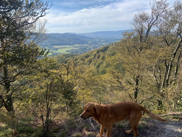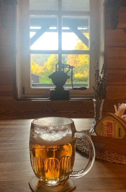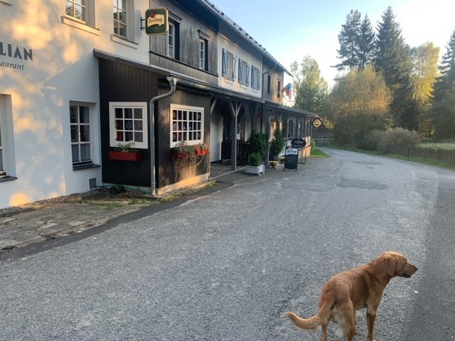 We headed out for a couple of hours on foot along the border at last light, about 6 pm, before calling in for a beer. Czech beer isn’t the sort of beer I would usually drink, but other than that pint on the Helsinki seafront last week with Richard (at 10 euros each) I haven’t been in a pub since April, so it went well. For a pilsner, Czech beer isn’t that bad also; indeed, they are renowned for it. Though no dogs were supposed to be allowed inside, the woman serving said it was no problem, and more, she brought over water and snacks for Roja, and sat with him for ten minutes. He does enjoy the attention.