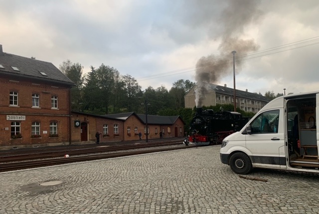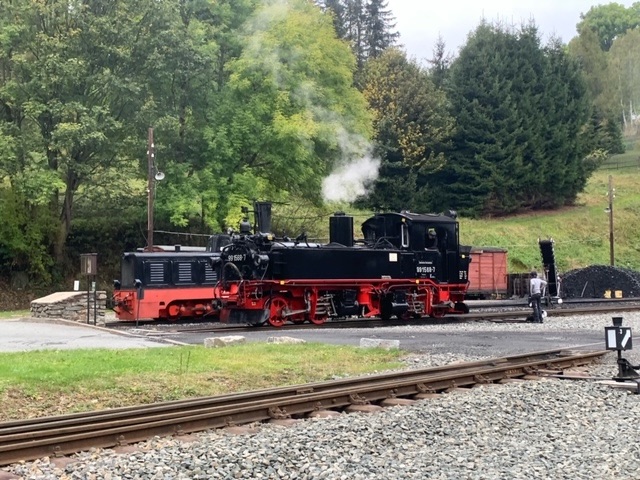 In Jöhstadt I stayed at the Railway Museum, which was emptying after a busy day just as I arrived. The narrow gauge railway was constructed in 1892 after much petition from the local people who felt they were being left behind by the improvements in rail travel elsewhere in Germany. It ran from Wolkenstein to Jöhstadt for 24 kilometres and carried mainly freight up until 1986 when the factories it served closed. Soon after a group of locals formed a preservation group, though for many years got nowhere, and were considered as harebrained by politicians and much of the rest of the country. But they didn’t give up, and raised money and awareness of the venture over the next decade, even starting the initial steps of renovation themselves. It reopened to great celebration in 2000, running just 8 kilometres to the village of Steinbach. There are now museums at both termini, and it is popular to walk or cycle between the stations, along the Schwarzwasser river, then return on the train. In some journeys the train crawls along, barely moving, while a three course dinner is served.