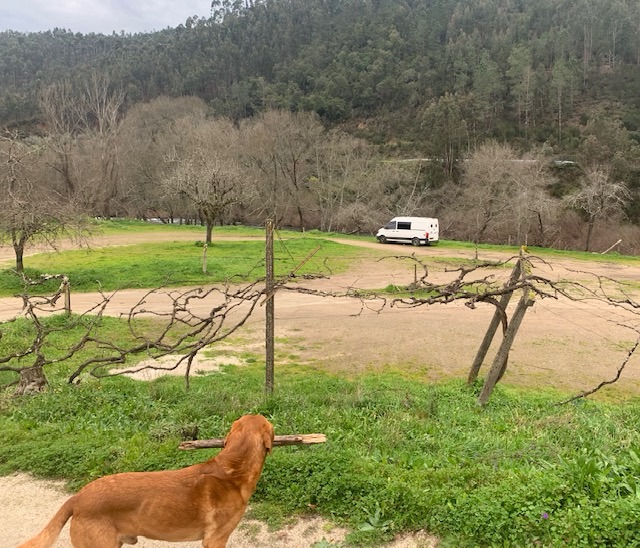 In the early afternoon I drove northeast crossing the Serra de Montemuro range, over a pass at 1200 metres, then down to the Douro river, followed the river for a while, then headed steeply up to a camp at a chapel I had found on the map. Chapels here are often on the top of hills, deserted at this of year, and bar any strong wind, excellent places for stopovers. One relatively close by, ten minutes or so away, was listed on the Park4Night website, but the one I have found isn’t, it’s a bit more rural, and I think better. It’s also on a hiking trail that we will undertake tomorrow.