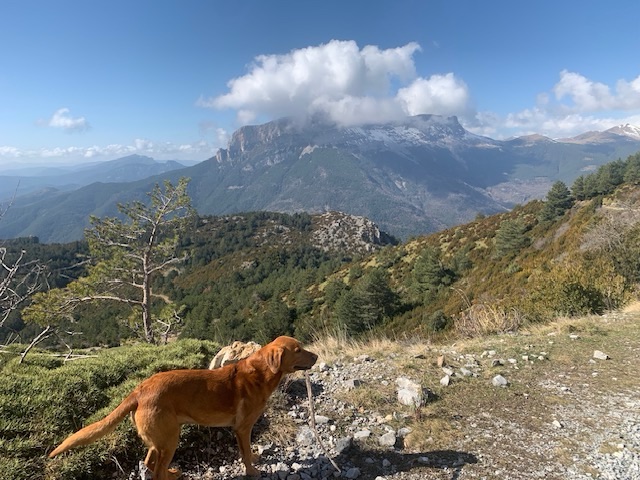 My route had originally just been to the snow line, which here in the south side of the Pyrenees is very high for the time of year, at about 1600 metres. The skies were clear, though some cloud came in during the morning, and the views exceptional.