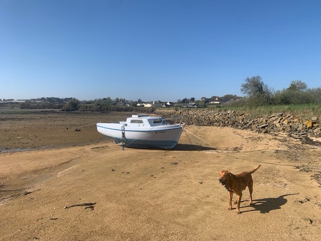 I found a small car park on StreetView a few kilometers out of Saint-Pol-de-Léon right on the beach. Many of the car parks on the beaches here that do not want vans staying put up a 2 metre height barrier, which is fair enough, as almost all the towns have places for them. This car park is ideal though, small, but quiet, just the odd dog walker, which Roja is very happy about. It’s another cloudless day, though a bit cooler, and he spends pretty much all of the time sat outside.