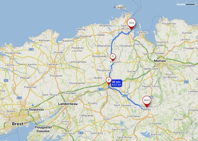 This area is high ground for Brittany, the town at 256 metres above sea level, and just a few kilometres from the Monts d’Arrée. Rather than the highlight of the hike there being the summits, it is a couple of rock formations that stand out, La Roche Tremblante (the trembling rock), which does supposedly move around in windy weather, and Le Roc’h Trevezel. The communications mast close to here was the object of a bomb attack in February 1974.