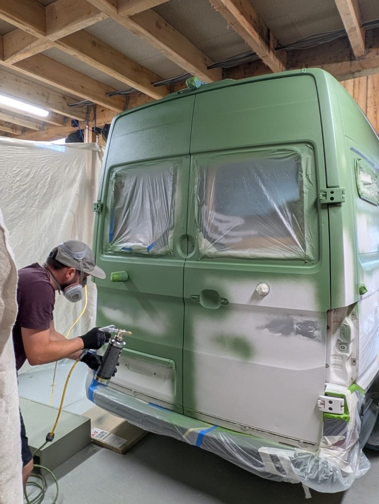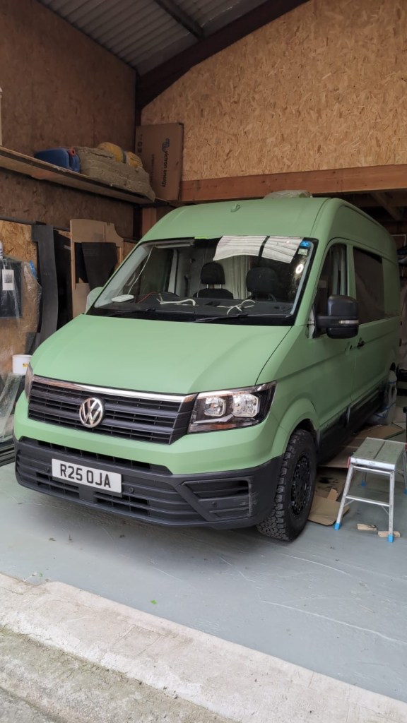 The van is barely recognisable from what it was. I had done some minor work to it in preparation for the sale that never happened; repainting the interior, fitting a new oven and LPG tank, sanding and revarnishing the kitchen surface and a general deep clean. It went into GV Conversion, who had done the original conversion, for a raptor respray, a MaxxFan, new rear windows, Starlink, removal of the TV, and the replacement of some hinges on cabinets.