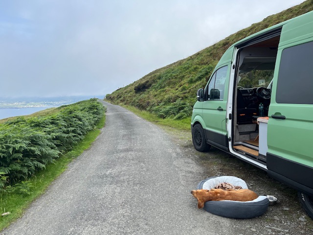 I left Shap just after 6 am on Sunday morning, preferring the early start to the school holiday traffic of the previous day, and had an uninterrupted journey to Cairnryan of just about 3 hours. Without any immigration procedure check-in is extremely quick, how it used to be at the Channel ports also, but that’s seems a distant past now. While waiting on the quay and taking breakfast a wandering official comes to take the dog’s details; a simple online form, that lasts a lifetime, must be completed at least five days before travelling, and it’s only necessary for the outward journey. Entering the Republic is different, as that requires evidence of worming treatment stamped by a vet in both directions (a cost of around £100).
