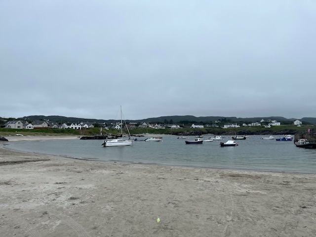 In the afternoon I moved back to the coast, to Portnablagh beach, where there is a great place to park up on the lower pier. The weather is a typical Irish summer sea mist with drizzle and a breeze that really should be called a wind; fine for me, as it’s relatively quiet, with families swimming and fishing rather than spending time lounging on the beach.