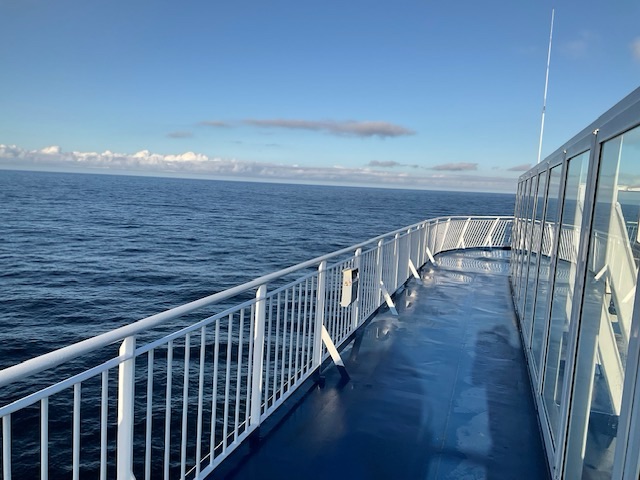 This morning I continued north to Hirtshals, via a break in Aalborg for some exercise and a sauna, arriving at 1 pm for the Smyril Line ferry departing at 3 pm. It is a busy crossing as it’s the second week of the low season prices, though most of those crossing will return a few weeks before I do, on the last crossing before winter on 20th November. The Norröna ferry runs a continuous loop Hirtshals – Torshavn (Faroes) – Seyðisfjörður (Iceland) – Torshavn – Hirtshals. Until about 15 years ago, it used to call in at Scalloway in the Shetland Islands as well, the return journey from Iceland I have taken, but more on that in the next post.