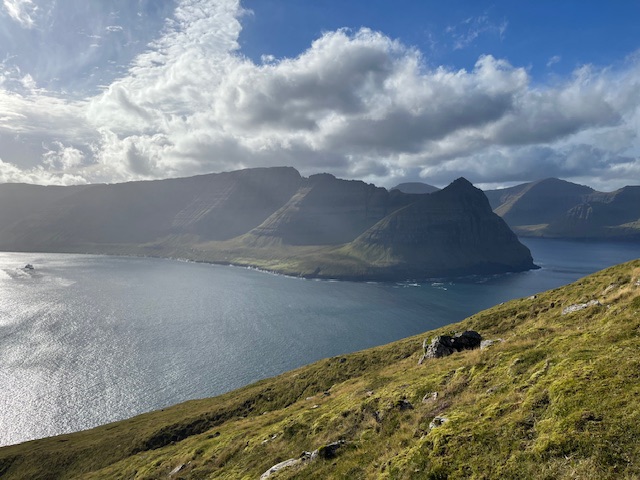 In 2004 after almost eight months living in Queenstown, New Zealand working as a cricket coach, I returned to the UK via the United States of America. I took the Air New Zealand flight to Los Angeles and then made my way across the States by Greyhound Bus, stopping to see a couple of old friends on route, and finishing in Boston. From there I flew to Reykjavik and made my way clockwise around Iceland to Seyðisfjörður travelling by bus and hitchhiking, hiking and camping. It was the second time I’d been to Iceland, but more about those visits in a later post. From Seyðisfjörður I took the Norröna ferry to Tórshavn. This is therefore, my second visit to the Faroe Islands, though that first one, in 2004, was a limited experience. I had a week before the ferry called again and camped initially at the Tórshavn campsite. For the whole week there wasn’t a breath of wind, and fog and mist clung to the islands like a shrunken shirt on an overweight prop forward, giving a visibility of less than ten metres. I travelled to a couple of the nearby islands, but it wasn’t easy on a limited budget, and neither was it rewarding with such limited viewing. From there I rejoined the Norröna to the Shetland Islands, where it called, for a few years (as I wrote about yesterday), then onto Thurso by Northlink ferries and eventually to Cumbria.