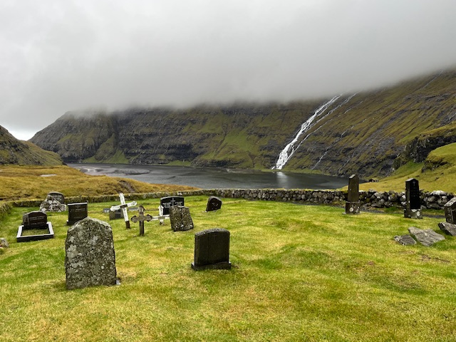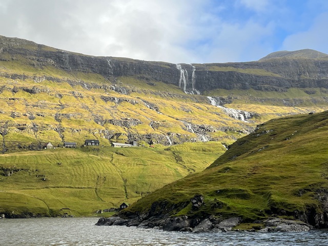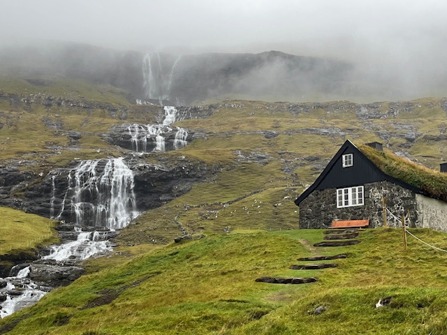The tiny community of Saksun has reintroduced farming in the last few years, but in tandem with tourism. The heritage farm owners at Dúvugarðar offer interaction with the horses and sheep, several self-catering traditional grass-roofed cottages, guided tours, a museum, and in the short season, a cafe. Steep mountains and a curtain of waterfalls surround its lagoon for a magnificent setting. In wild weather it is at its best.