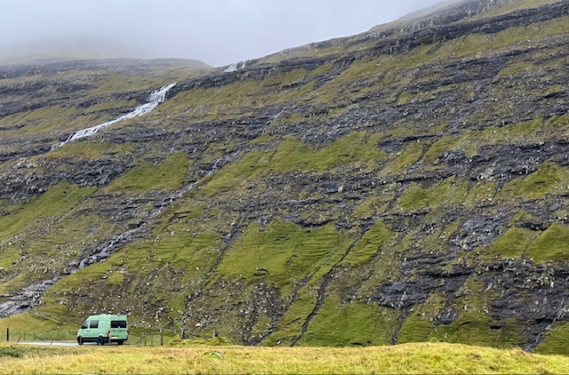 I stayed two nights in the car park by the Heritage Farm, and was made very welcome by its owners. A guy came over and chatted to me on Sunday evening just as it was going dark. He explained that having the occasional van visiting is fine, but in the six weeks of the season, they are regularly receiving more than 30 each day, and motorhomes rather than campervans. The road to Saksun is single track and eight kilometres in length, with passing places only every 500 metres.