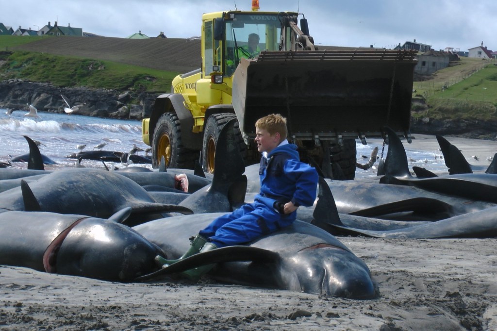 The grindadráp is a tradition of killing pilot whales and sometimes other dolphins dating back to 800 BC. Until relatively recently, pilot whale meat was an important source of food, but there is no longer a need for whale meat to meet nutritional needs as it is now contaminated by toxins and unfit for consumption. Family groups are driven to shore. Blunt metal hooks are sunk into their blowholes and they are dragged up the beach where they are often killed in a very basic way, though it is argued, traditional way, with a spinal lance.