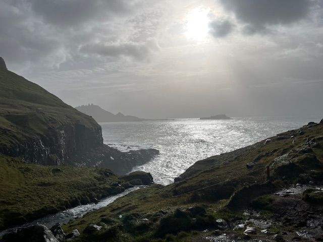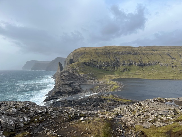 I’ve had to change my definition of a fine day since I’ve been on the Faroe Islands, to one which doesn’t have heavy rain arriving sideways along with the thirty miles per hour plus winds. A day with breaks in the rain is decent enough, but it’s not the getting wet that is the issue, it’s the clouded view. If it’s possible to see the spectacular jagged and sheer mountains around the coasts, then it’s a fine day. And I’ve not had many of them, three out of ten days so far. so when they come along, it’s necessary to pack quite a bit in.