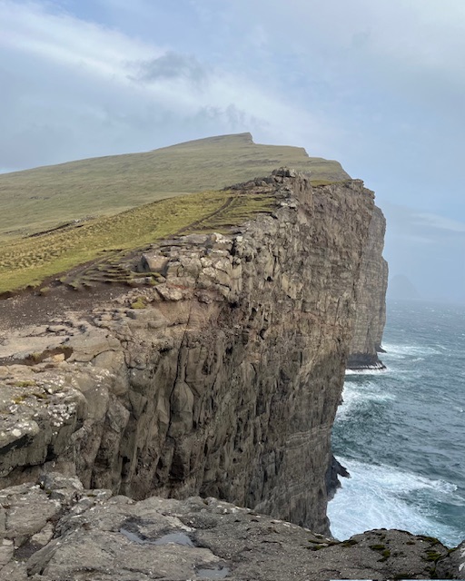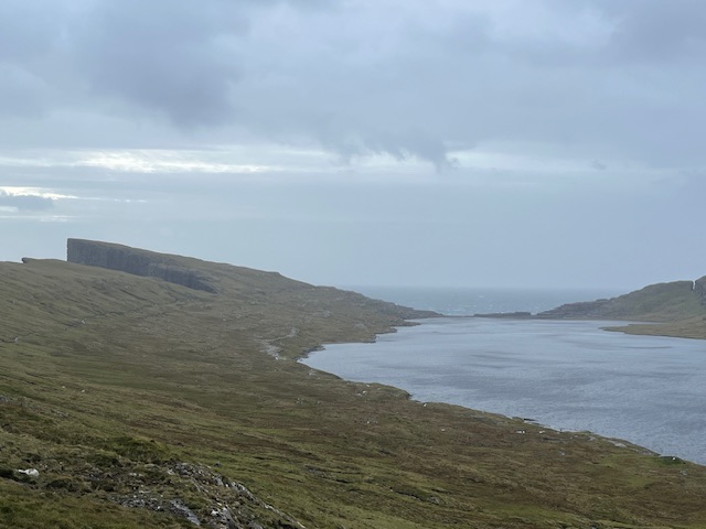 A three mile trail from the visitor’s centre gradually ascends to a height of 250 metres above sea level and a viewpoint that looks down on Lake Leitisvatn which almost floats above the ocean. Maintained hiking trails are rare in the Faroe Islands, which is a pity. There isn’t a funded National Park network, nor is there any volunteer or charitable group for the upkeep of paths. A week ago, when I was at Viðareiði in the Northern Isles, there was a request for hikers to pay 300 kroner to walk the trail, about £35. Here at Trælanípa there is a turnstile at the cafe and a charge of 200 kroner. It seems to me that some sort of tourist tax is a better way to fund the building of new trails and the maintenance of existing ones, rather than charging a large amount to a relatively small percentage of visitors.