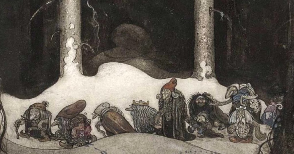 In Faroese folk tales, hidden people are said to be “large in build, their clothes are all grey, and their hair black. Their dwellings are in mounds, and they are also called Elves.” Parents caution children against throwing stones, as it may hit the hidden people. In a recent survey (March 2024) conducted by Local.fo (the radio station), of 5,000 people asked, 20% accept that ‘the hidden people’ actually exist, a further 20% preferred not to answer, and just less than 5% claim to have seen them.