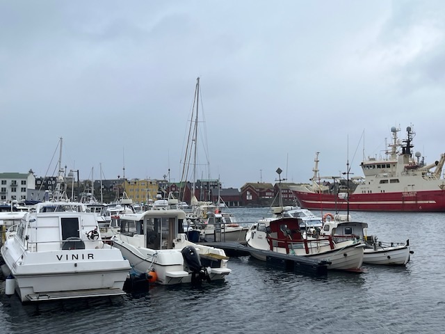 Walking around here on Friday morning I came across a school group of about 20 sixth graders with their teacher. I chatted with the teacher while the kids had some free time, and he co-opted me to join them for half an hour while he gave some history of Tinganes to his group, and asked me to talk to them about sport and the UK. Perhaps not surprisingly, it was the latter that attracted the most interest, and I was flooded with questions on rugby and cricket, which I chose to introduce them to. We just needed a few balls and a bit of grass..