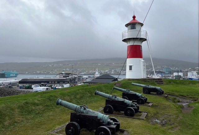Skansin lighthouse and fort, on a hill beside the port of Tórshavn. The fort was built in 1580 to protect against pirate raids of the town. The fort was expanded considerably in 1780 and went through a series of rebuilds for many years afterwards.
