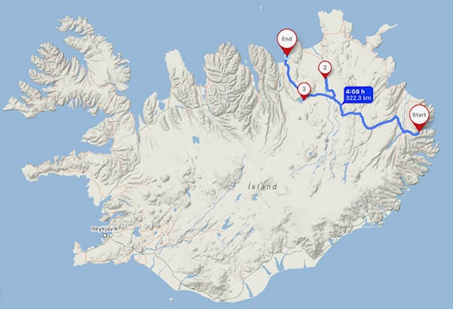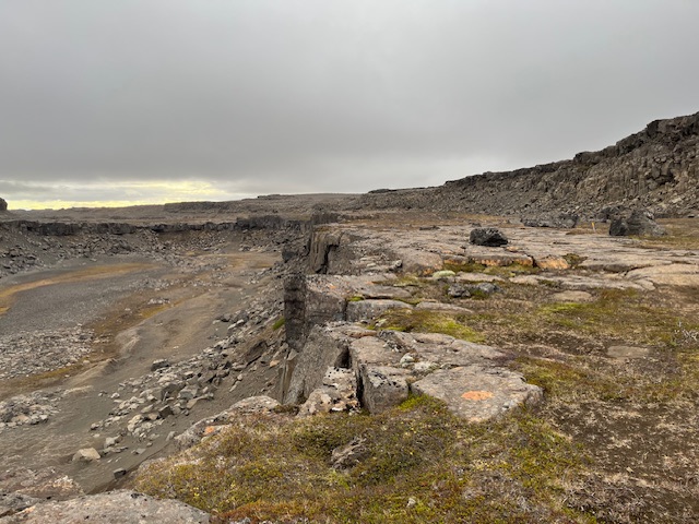 I drove to the first town, Egilsstaðir, and stocked up at the supermarket as well as with water, and then on for a couple of hours to the waterfalls at Dettifoss. The weather is excellent at the moment, almost clear skies and a maximum of about 8C, though it does seem that it will deteriorate from Friday; I was keen to make to most of it and get in some hiking.
