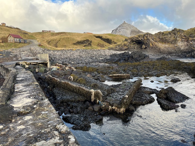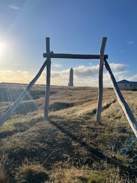 The following morning I checked into the Vistor’s Information Centre, but ended up with a social chat rather than gathering any information. She was of Polish origin and wanted to tell me all about her trip to Kraków later this week. She did tell though, that the area has strong Polish links, and many settlers here in the last twenty years from southern Poland. Iceland has actively tried to gain population in the last thirty years, and Poland has been one of its great successes. The lady did seem very safety orientated though. She advised that in such winds as today, 50 mph or so, I should avoid the cape, or the point, on which there are two lighthouses. I proceeded with caution, but it fine.