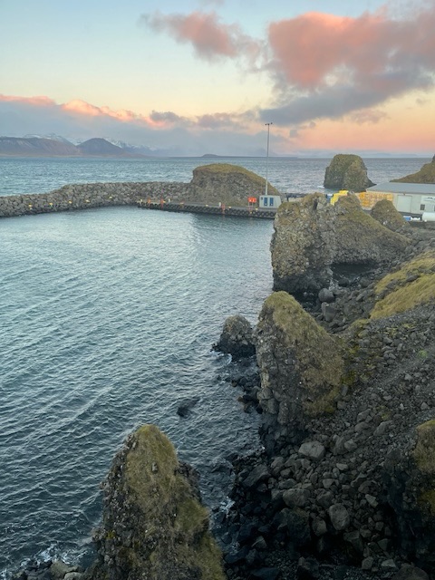 This afternoon I have continued along the southern coast of Snæfellsnes, left it, and am based for the night at Snorrastaðir farm, which offers a place for vans, and a warm lounge, for a reduced over 60s price of the equivalent of £10.. a real bargain, considering the Freezer Hostel was £35. Many places here and in the Faroes over reduced prices for over 60s. I’m all for it…