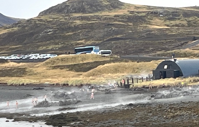 I wrote in the last post that I thought 95% of the campervans on the Iceland roads at the moment were rentals, but it’s more than that. I’m at the Reykjavik campsite at the moment and there’s about a hundred vans here each night. They all roll in between about 6 and 10 pm, and leave early the next morning. There’s just me and a French Mercedes van here that aren’t rentals. That number is tripled at least in the summer months. The rentals are usually for a week, so it’s straightforward to calculate the number of rentals on the roads. It may seem expensive, 2000 euros rental, and around 40 euros campsite fee a night, but it’s the cheapest way to see the country. There’s few campsites open, they need to have an indoor heated kitchen, and few do. There’s rental vans don’t have indoor cooking facilities, so it’s outdoors, where it’s below zero, or a restaurant, or a campsite kitchen.