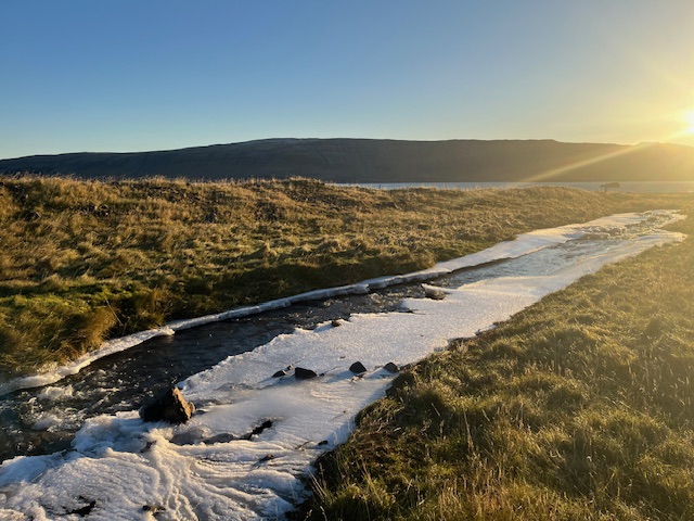From there I wanted to head to Þingvellir National Park, Iceland’s first National Park and a UNESCO Heritage site. The Alþingi, or Iceland’s parliament, was founded there in 930, making it the oldest operating parliament globally. The parliament continued to convene at the fields of river Öxará for 868 years or until 1798. It has a the unique geographical setting at a rift valley on the divide between the North-American and Eurasian continental plates. However.. there was rain forecast, and the temperature inland was below zero, so it was falling as snow and the roads were becoming increasingly dangerous for my two wheel drive with its basic snow tyres. I abandoned the venture, and instead took the slow road around Hvalfjörður and settled for the night at a sheep farm, Bjarteyjarsandur, that offers stayovers and has a luxurious kitchen and lounge.