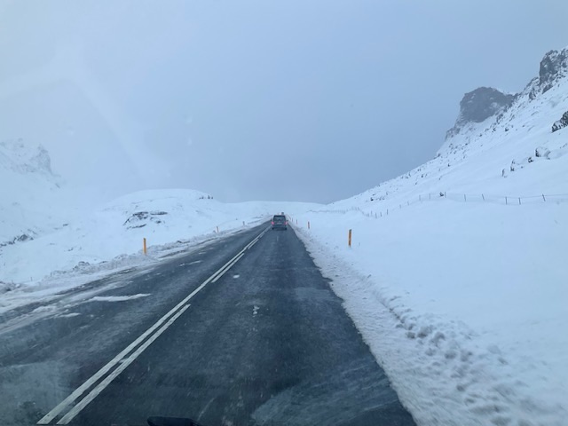 I settled for the night at another farm, at Smáratún, the other two I have overnighted at have been great, and this was also. During the night a couple of centimetres of snow fell, rare for this time of year, and though I drove at 9 am through some ice and slush, it would disappear by lunchtime. My tyres are snow able, but being front wheel drive with randomly balanced weight the traction isn’t good on any hill of greater than 8-10%.