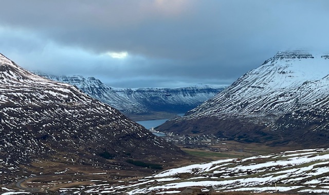 Some of the earliest settlers to Iceland lived here, and there has been a town since 1848. It was an important base for the British and Americans in the Second World War. In December 2020 the whole town was evacuated for a month after a mud slide. 39 houses were destroyed.