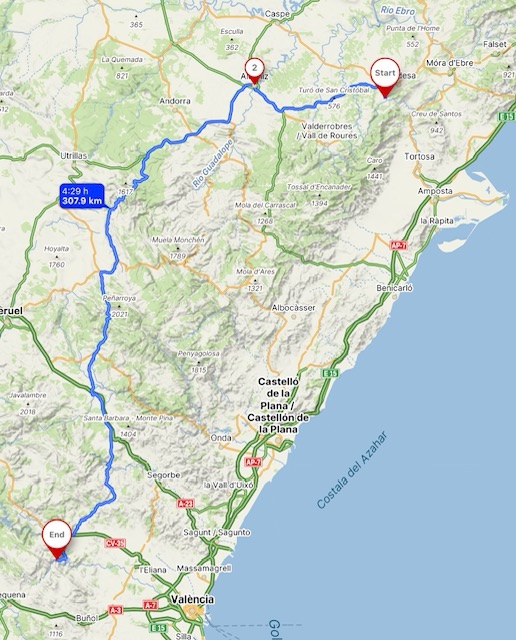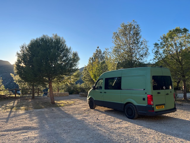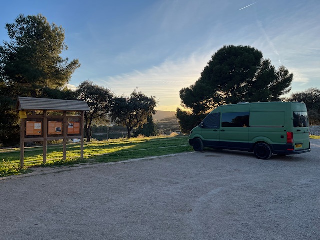 I drove a half hour south east to a village where I had spotted some decent hiking. Torrelilla had a small aire for vans, and was ideal for the wait. It was cold though, 6C, with that north wind still. The boss of the VW place told me it was because 20 centimetres of snow had fallen in the Pyrenees and that gave an added chill factor.