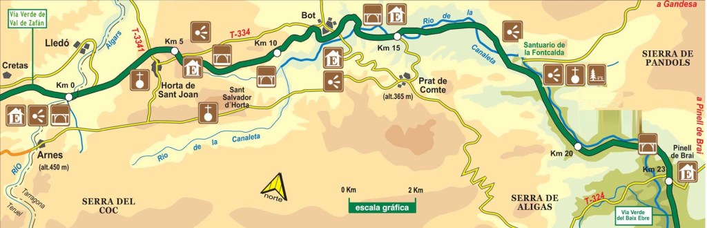 The Greenway in its entirety is 83 km, and will soon be a single route of more than 175 km from Puebla de Híjar to the mouth of the Ebro River as this, the new Carrilet de la Cava Greenway and the Ebro Nature Trail will be linked together. It makes for a tremendous journey.