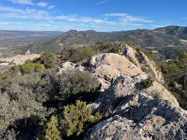 My main reason to be in Biar was the mountains beneath which it is situated, known by locals as the Sierra de Biaz, but actually called the Sierra del Fraile. There is a ridge between two peaks just above 1000 metres and a great view across the region. As Biar itself is at 500 metres, it isn’t a long hike to get up to the ridge, though once there, the going is slow, is the trail is narrow and airy with a few bits of scrambling. This was Saturday morning, and a good start to a day that continued by watching sport.